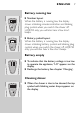 ENGLISH 7 Battery running low Number layout: C ◗When the battery is running low, the display shows a blinking minutes indication and blinking plug symbol when you switch the shaver off. HQ9190 only: you will also hear a few short beeps. Battery symbol layout: C ◗When the battery is running low, the display shows a blinking battery symbol and blinking plug symbol when you switch the shaver off. HQ9190 only: you will also hear a few short beeps.