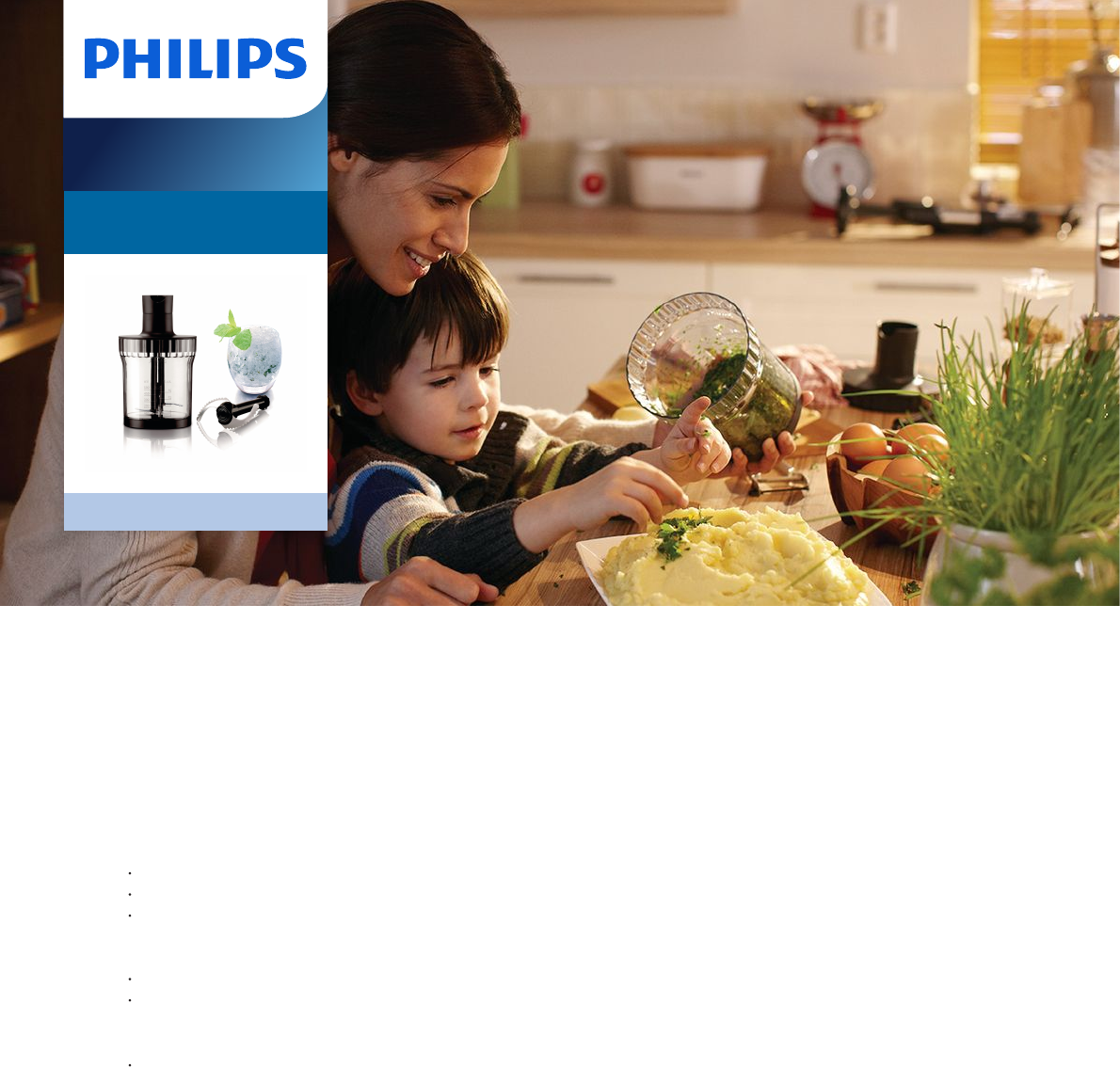 The XL chopper accessory extends the functionality of your Philips Avance Collection Hand Blender and allows