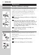 Bahasa Melayu 51 5 Bersihkan pencukur dengan rapi setiap kali selepas digunakan (lihat bahagian ‘Pembersihan’). 6 Luncurkan penutup pelindungpada alat pencukur untuk mengelakkan kerosakan. Petua untuk peluncuran yang optimum dan hasil cukuran yang licin - Gerakkan alat pencukur dengan perlahan-lahan secara membulat pada kulit anda. - Jangan beri terlalu banyak tekanan pada pencukur, kerana ini boleh menyebabkan kerengsaan kulit. - Untuk pastikan peluncuran yang betul, sapukan perapi pencukur dengan kerap.