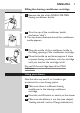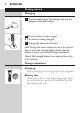 18 English 2 Turn the guard clockwise and lift it from the shaving unit. Note: Only remove one shaving head at a time.This ensures that you always put the shaving head back into its original holder, which is necessary because two of the shaving heads have special holes for the shaving conditioner.This also ensures that you do not mix up the cutters and guards of different shaving heads, which affects the shaving performance. 3 If necessary, remove the cutter from the guard.