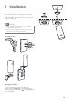 3 Installation Vous pouvez placer le moniteur avec la base magnétique sur une surface plane. Vous pouvez aussi le monter au plafond ou au mur (voir les images ci-dessous) : Remarque •• Avant d'installer le moniteur, assurez-vous qu'il est à proximité d'une prise secteur. •• Avant de fixer les chevilles et les vis fournies, percez des trous sur une surface plane et dure.