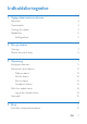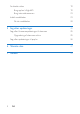 Indholdsfortegnelse 1 Vigtige sikkerhedsinstruktioner Sikkerhed 3 3 Overholdelse 4 Omsorg for miljøet 4 Meddelelse 5 Skriftligt tilbud 5 2 Din nye skærm 7 Oversigt 7 Monter den på et stativ 8 3 Opsætning 9 Konfigurer skærmen 9 Administrer dine skærme 11 Tilføj en skærm 11 Del din skærm 12 Slet en skærm 13 Omdøb en skærm 14 Skift til en anden konto 14 Log af den aktuelle konto 14 Genindstil 15 4 Brug 17 Kontroller netværksforbindelsen 17 DA 1