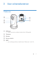 Sisällysluettelo 1 Tärkeitä turvallisuusohjeita Turvallisuus 3 3 Vaatimustenmukaisuus 4 Ympäristöstä huolehtiminen 4 Huomautus 5 Kirjallinen tarjous 5 2 Uusi valvontakamerasi 7 Yleiskuvaus 7 Jalustaan kiinnittäminen 8 3 Asetukset 9 Valvontakameran asentaminen 9 Valvontakameroiden hallitseminen 11 Valvontakameran lisääminen 11 Valvontakameran jakaminen 12 Valvontakameran poistaminen 13 Valvontakameran nimeäminen uudelleen 14 Vaihtaminen toiseen tiliin 14 Kirjautuminen ulos nyk