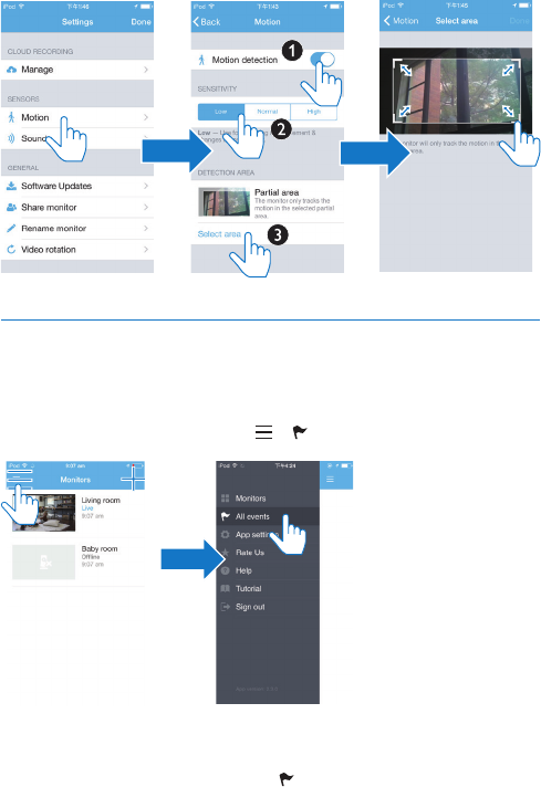 • Pour les événements déclenchés par la détection de mouvements ou de