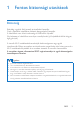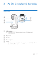 Tartalomjegyzék 1 Fontos biztonsági utasítások Biztonság 3 3 Megfelelőség 4 Óvja a környezetet! 4 Megjegyzés 5 Írásos ajánlat 5 2 Az Ön új megfigyelő kamerája 7 Áttekintés 7 Felszerelés háromlábú állványra 8 3 Beállítás 9 A megfigyelő kamera beállítása 9 A megfigyelő kamerák kezelése 11 Megfigyelő kamera hozzáadása 11 Megfigyelő kamera megosztása 12 Megfigyelő kamera törlése 13 Megfigyelő kamera átnevezése 14 Átváltás másik fiókra 14 Kijelentkezés a jelenlegi fiókjából 14 R