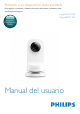 3 Configuración Configuración del monitor Con la aplicación Philips InSightHD, puede ver y escuchar lo que ocurre en su hogar a través de un dispositivo móvil. 1 2 Coloque el monitor tan cerca del router inalámbrico como sea posible para garantizar que la conexión sea perfecta. Descargue e instale la aplicación Philips InSightHD. a Cree una cuenta. b Para finalizar la configuración, siga las instrucciones que aparecen en la pantalla.