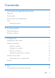 Contenido 1 Instrucciones de seguridad importantes Seguridad 3 3 Conformidad 4 Conservación del medioambiente 4 Aviso 5 Oferta por escrito 5 2 Su nuevo monitor 7 Descripción general 7 Montaje en trípode 8 3 Configuración 9 Configuración del monitor 9 Gestionar monitores 11 Añadir un monitor 11 Compartir un monitor 12 Eliminar un monitor 14 Cambiar el nombre de un monitor 14 Cambiar a otra cuenta 15 Cerrar sesión en su cuenta actual 15 Reiniciar 16 4 Uso 18 Comprobación