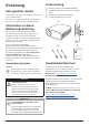 8 Anhänge Technische Daten Technologie / Anzeige Anzeigetechnologie...............................................LCD Lichtquelle........................................ Einzelne LED W Lumen......................................................................... 250 Auflösung.......................................1920 x 1080 Pixel Lebensdauer der LED.......etwa 30.000 Stunden Kontrastverhältnis............................................ 3000:1 Seitenverhältnis..............................................