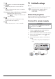 f g Start, pause or resume media playback. / Skip to the previous or next video file. 3 Initial setup Notice Make sure all devices are disconnected from their power supplies before establishing or changing any connections. h Return to the previous screen or exit the current screen. i Navigation buttons (Up, Down, Left, Right) • Navigate items on the screen. • Press / to change the value for the current setting. j Quick access to the setup options (e.g. picture and sound options).
