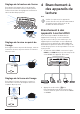 e / Pour augmenter ou diminuer le volume. f Pour démarrer, mettre en pause ou reprendre la lecture multimédia. / g Pour passer au fichier vidéo précédent ou suivant. 3 Configuration initiale Avis Veillez à ce que tous les appareils soient déconnectés de leur alimentation électrique avant d’effectuer ou de modifier un branchement. h Pour revenir à l’écran précédent ou sortir de l’écran actuel. i Touches de navigation (haut, bas, gauche, droite) • Pour naviguer entre les éléments sur l’écran.