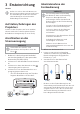 3 Ersteinrichtung Hinweis Inbetriebnahme der Fernbedienung VORSICHT! Stellen Sie sicher, dass alle Geräte von der Stromversorgung getrennt sind, bevor Sie Verbindungen zu diesen herstellen oder Änderungen an bestehenden Verbindungen vornehmen. Die unsachgemäße Verwendung der Batterien kann zu Überhitzung, Explosion, Brandgefahr und Verletzungen führen. Auslaufende Batterien können die Fernbedienung beschädigen.