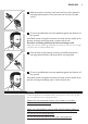BAHASA MELAYU Perapian tepat dengan sikat perapian janggut Dengan sikat perapian tepat, anda boleh merapi sehingga panjang 3mm. Nota: Apabila anda menggunakan kepala perapian tepat untuk kali pertama, sentiasa letakkan sikat perapian tepat pada kepala perapian tepat. 1 Luncurkan sikat perapian tepat pada bahagian depan kepala perapian tepat dan tolakkannya ke belakang sehingga ia terkunci dengan betul (‘klik’). 2 Untuk merapi dengan paling berkesan, gerakkan perkakas melawan arah pertumbuhan rambut.