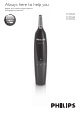 BAHASA MELAYU 29 Penyimpanan 1 Letakkan tukup pelindung pada kepala perapian hidung/telinga/kening. 2 NT3160: Simpan perkakas di dalam pau yang dibekalkan. Alam sekitar Jangan buang perkakas dengan sampah rumah yang biasa pada akhir hayatnya, sebaliknya serahkan ke pusat pungutan rasmi untuk dikitar semula. Dengan berbuat demikian, anda membantu memelihara alam sekitar. Jaminan dan sokongan Jika anda perlukan maklumat atau sokongan, sila lawati www.philips.