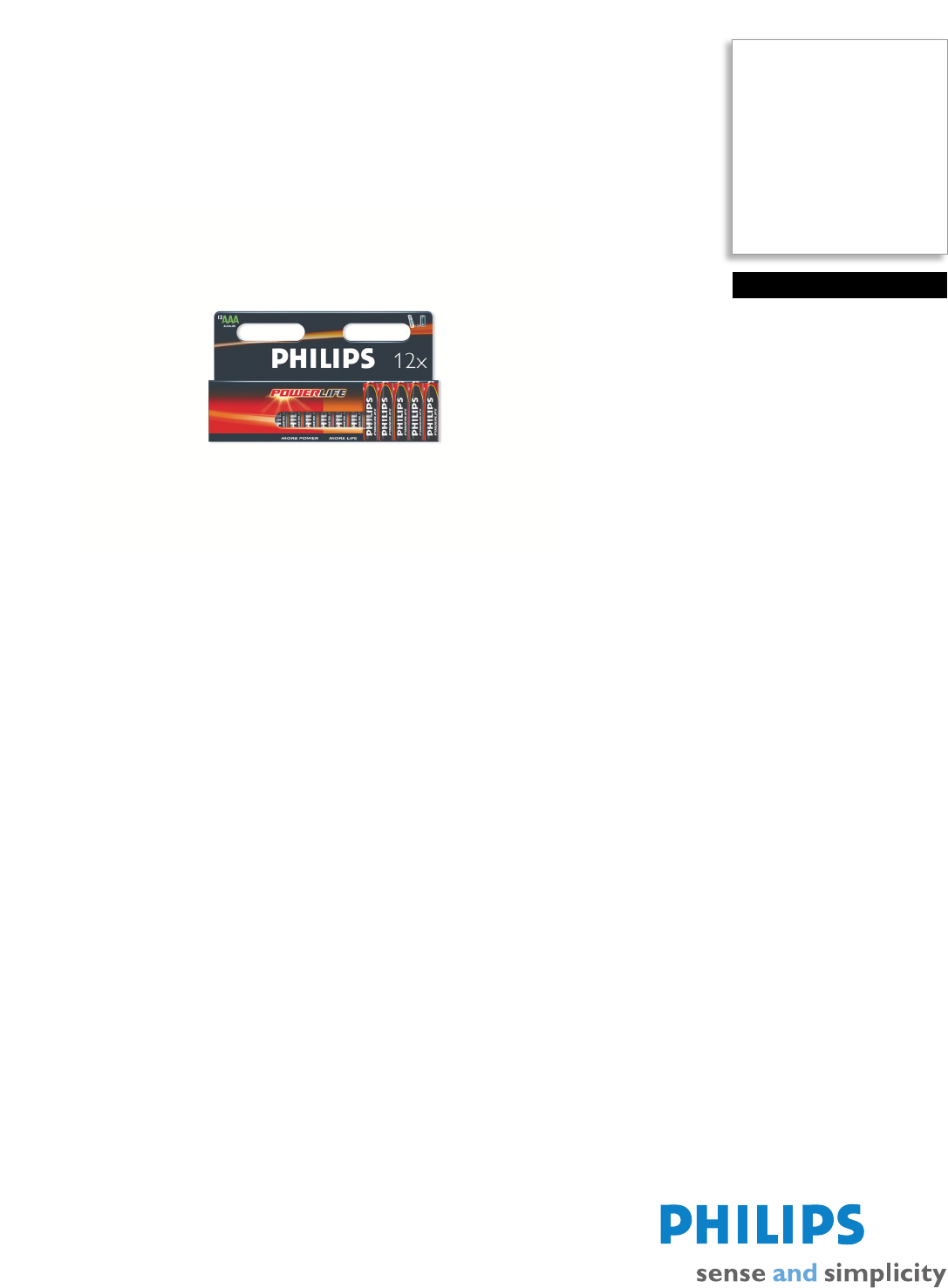 • Philips Alkaline batteries contain 0% Cadmium, Mercury, Lead