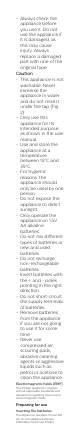 - Always check the appliance before you use it. Do not use the appliance if it is damaged, as this may cause injury. Always replace a damaged part with one of the original type. Caution - This appliance is not washable. Never immerse the appliance in water and do not rinse it under the tap (Fig. 2). - Only use this appliance for its intended purpose as shown in the user manual. - Use and store the appliance at a temperature between 15°C and 35°C.