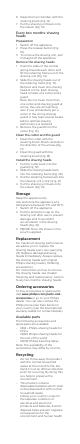 Masala Kemung Solusi h kinan penyeb ab Alat mengel uarkan suara aneh. Terlalu banyak kotoran di dalam kepala pencuku r. Bersihkan kepala cukur. Setelah dibersihkan, lumasi titik tengah di bagian dalam pelindung dengan Philips Cleaning Spray (HQ110) (lihat 'Pembersiha n dan perawatan'). Kepala cukur rusak atau aus. Ganti kepala (lihat 'Penggantian ') cukur. PHILIPS PQ208, PQ207, PQ206, PQ205, PQ202 Pencukur dan Penata Elektrik 3 V ~ 1.
