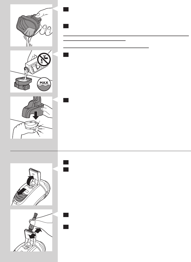 5 Töltse fel a tisztítókamrát Jet Clean tisztítófolyadékkal (HQ200) a