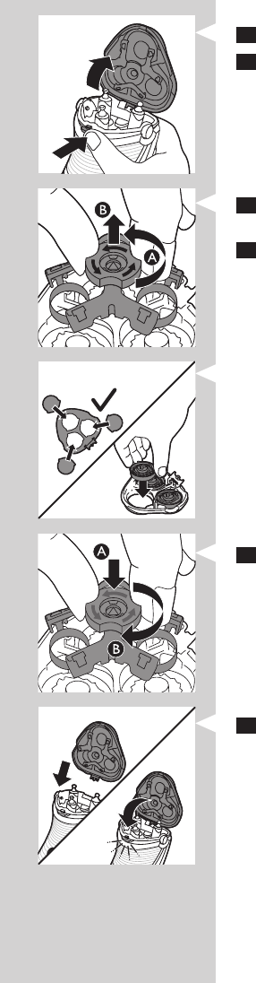 6 Izņemiet skuvekļa galviņas no skūšanas bloka un ievietojiet tajā jaunas.