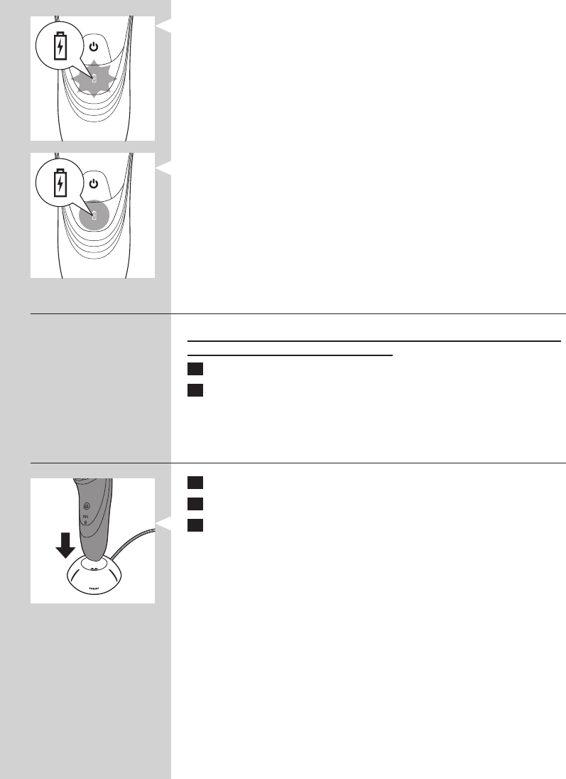 , Simbolul bateriei indică starea de încărcare a aparatului de ras