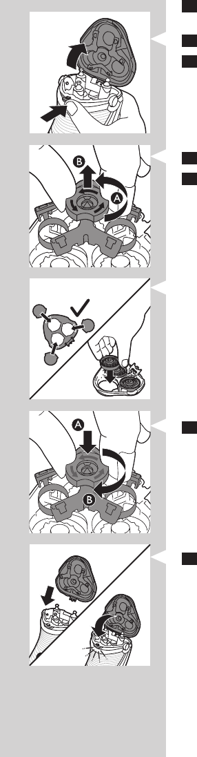 6 Remove the shaving heads and place new ones in the shaving unit.