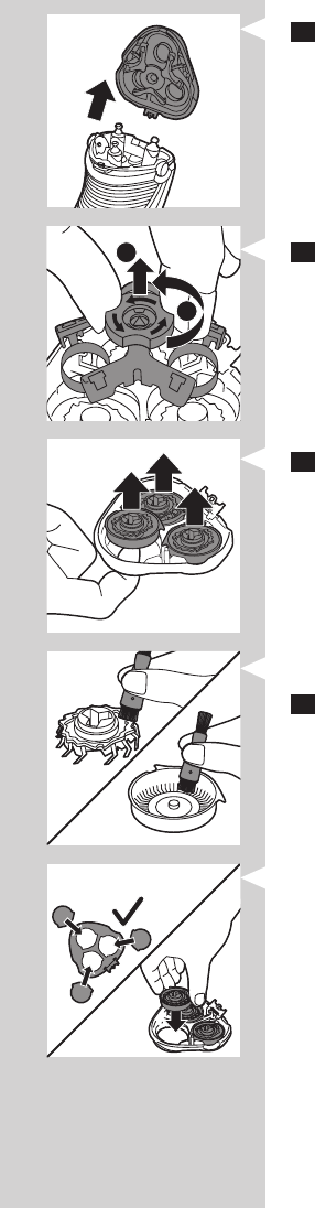 5 Scoateţi şi curăţaţi câte un cap de bărbierit pe rând. Fiecare cap de