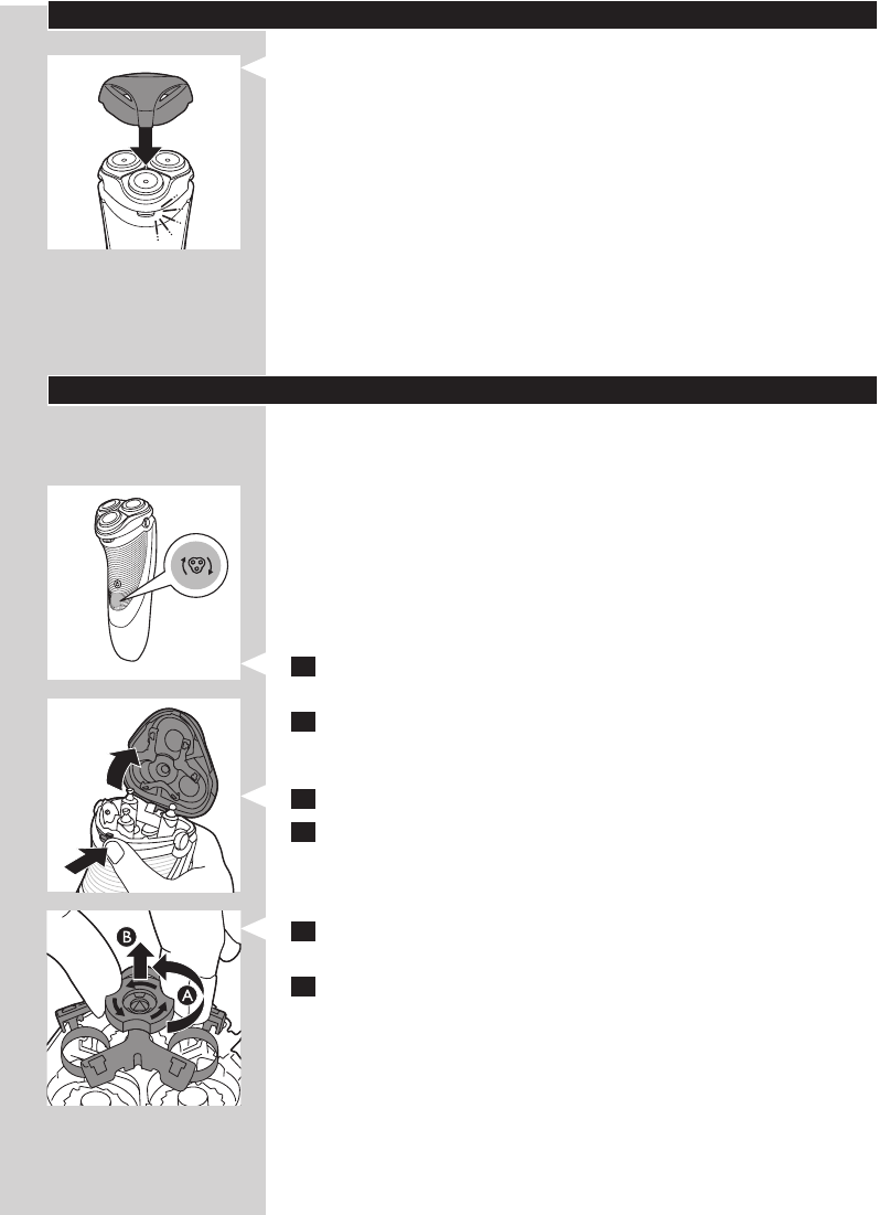 6 Извлеките старые бритвенные головки и вставьте в бритвенный