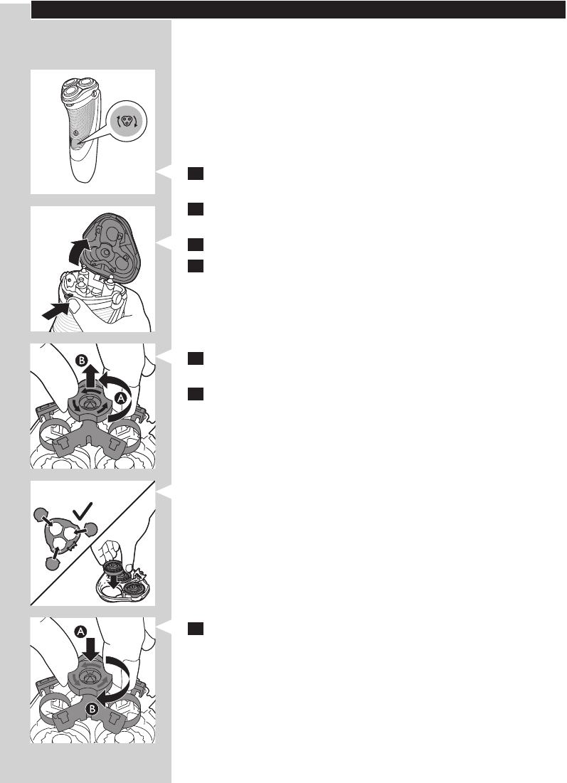 6 Вийміть бритвені головки і встановіть у бритвений блок нові.