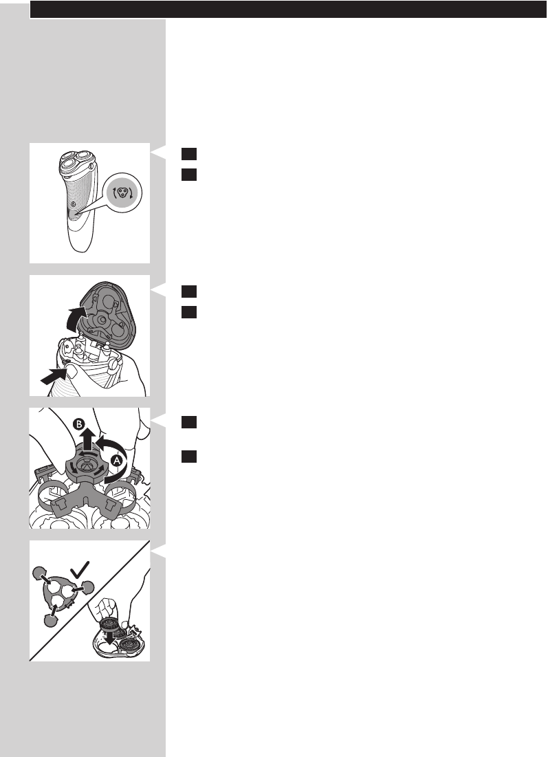 6 Išimkite skutimosi galvutes ir į skutimosi įtaisą įdėkite naujas.