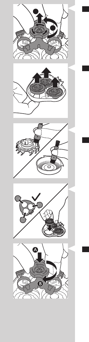 5 Odstranite in očistite vsako brivno glavo posebej. Vsaka brivna glava
