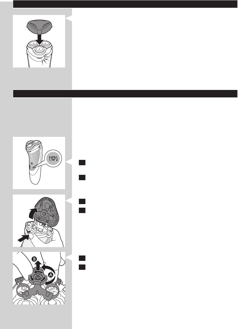 6 Zdejmij głowice golące z elementu golącego i załóż nowe.