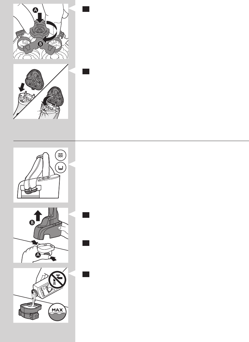 7 Reintroduceţi cadrul de susţinere în unitatea de bărbierire (A) şi