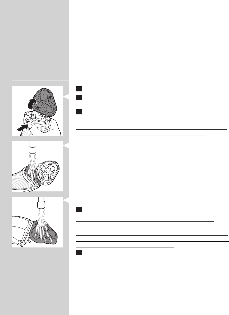 3 Изплакнете бръснещия блок и отделението за косми с гореща