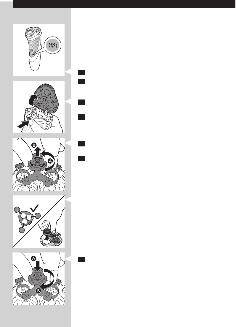 6 Свалете бръснещите глави и сложете новите в бръснещия блок.