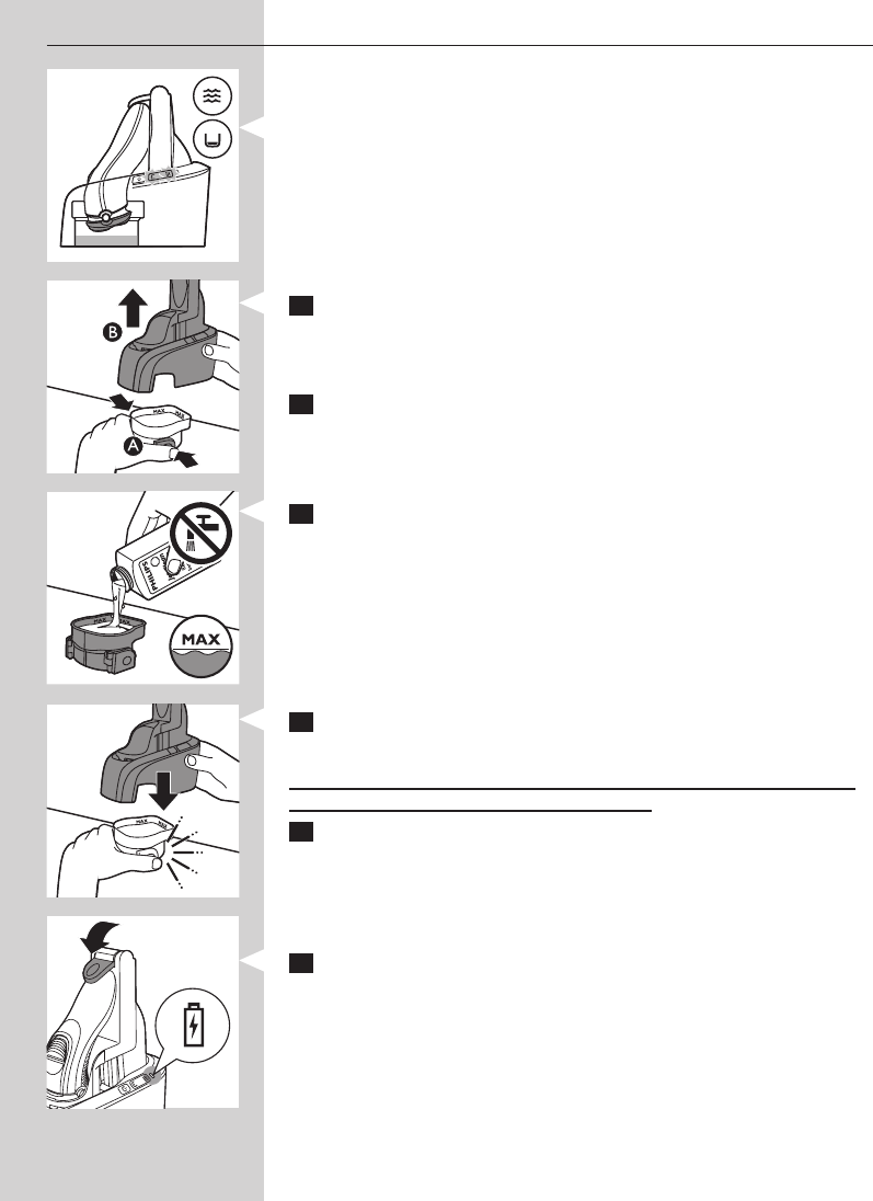 Megjegyzés: Töltse fel a tisztítókamrát az első használat előtt, és