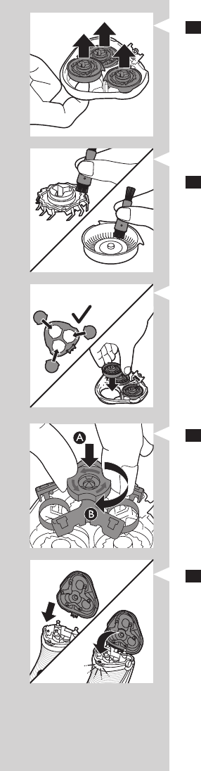 6 Tegye vissza a borotvafejeket a borotvaegységbe.