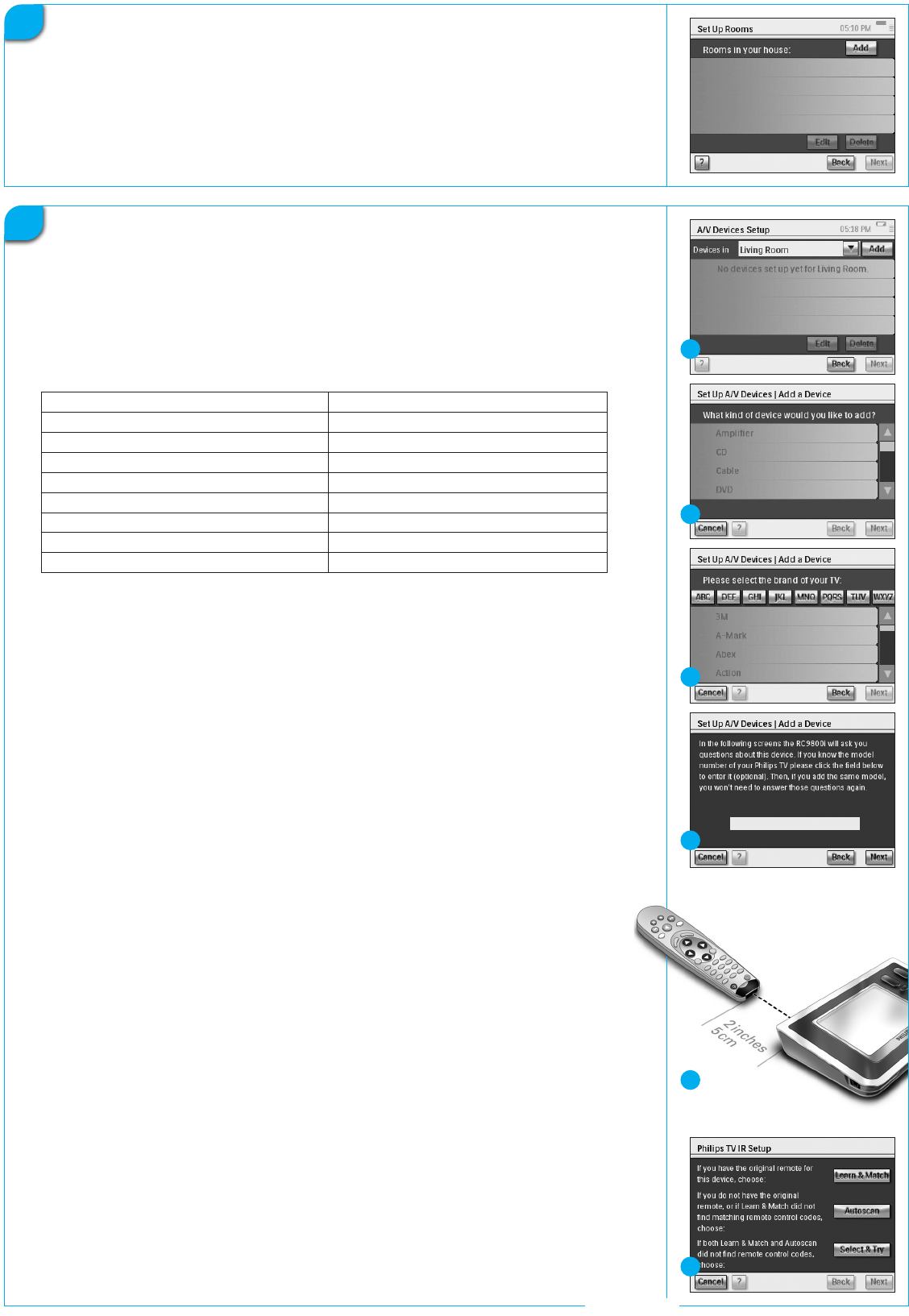Desta forma, o RC9800i irá copiar automaticamente todas as características relevantes do dispositivo quando