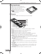 Få mest mulig ut av enheten ■ ■ ■ ■ Indikatoren for batteristatus: . Denne indikatoren går gjennom 4 trinn (fullt, 2/3, 1/3, minimum). Når RC9800i-enheten er plassert i holderen og lader, er indikatoren for batteristatus animert. Indikatoren for tid: Tiden angis i formatet TT.MM eller TT.MM PM/AM. Du finner mer informasjon om hvordan endrer klokkeslettet eller tidsformatet på side 43. Indikatoren for aktiv IR: . Indikatoren lyser når fjernkontrollkodene sendes.