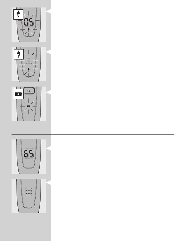 - Når shaveren oplader, blinker batterisymbolet blåt.