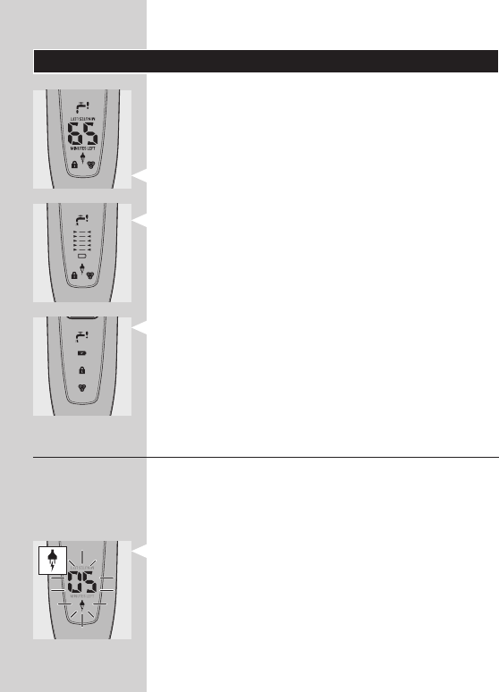 - Kun parranajokone latautuu, minuutti-ilmaisin ja