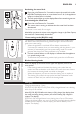12 ENGLISH Trimming You can use the trimmer to groom your sideburns and moustache. 1 Pull the shaving unit straight off the shaver. Note: Do not twist the shaving unit while you pull it off the shaver. 2 Press the on/off button once to switch on the shaver. ,, The display lights up for a few seconds. 3 Slide the trimmer slide forwards to slide out the trimmer. 4 You can now start trimming. 5 Slide the trimmer slide backwards to retract the trimmer.