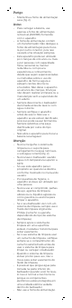 Proble ma Possível causa Solução O barbea dor não está funcio nando como antes. As cabeças de corte estão danifica das ou gastas. Substitua as cabeças de corte. Os resíduos de espuma ou gel obstruem as cabeças de corte. Lave a unidade de corte em água quente corrente. Você não inseriu as cabeças de corte adequad amente. Verifique se as saliências das cabeças de corte se encaixam corretamente nos espaços. O barbea dor não funciona quando pressio no o botão liga/desl iga.