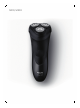 English 9 Shaving tips & tricks - Make circular movements during use. Circular movements provide better shaving results than straight movements. - Your skin may need 2 or 3 weeks to get accustomed to the Philips shaving system. Switching the appliance on and off 1 To switch on the appliance, press the on/off button once. 2 To switch off the appliance, press the on/off button once. Shaving 1 Put the small plug in the appliance. 2 Put the adapter in the wall socket. 3 Switch on the appliance.