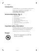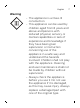 English 7 Warning - The appliance is a Class III construction. - This appliance can be used by children aged from 8 years and above and persons with reduced physical, sensory or mental capabilities or lack of experience and knowledge if they have been given supervision or instruction concerning use of the appliance in a safe way and understand the hazards involved. Children shall not play with the appliance. Cleaning and user maintenance shall not be made by children without supervision.