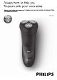 ENGLISH Introduction Congratulations on your purchase and welcome to Philips! To fully benefit from the support that Philips offers, register your product at www.philips.com/ welcome. Please read this user manual, as it contains information about the wonderful features of this shaver as well as some tips to make shaving easier and more enjoyable. General description (Fig.