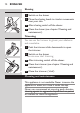 FRANÇAIS (CANADA) 2 Allumez le rasoir. -- Vous pouvez commencer à tondre. 3 Après la tonte, éteignez votre rasoir. 4 Nettoyez la tondeuse (voir section «Nettoyage et entretien»). 5 Fermez la tondeuse (vous entendrez un déclic). Nettoyage et entretien Cet appareil n’est pas lavable. Ne plongez jamais l’appareil dans l’eau et ne le rincez pas sous l’eau du robinet.