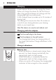 ENGLISH 15 6 Put the retaining frame back into the shaving unit (A) and turn the lock clockwise (B). 7 Insert the lug of the new shaving unit into the slot in the top of the shaver. Then close the shaving unit. Note: If the shaving unit does not close smoothly, check if you have inserted the shaving heads properly and if the retaining frame is locked. Ordering accessories To buy accessories or spare parts, visit www.shop.philips.com/service or go to your Philips dealer.