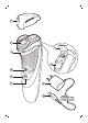 7 Insert the lug of the shaving unit into the slot in the top of the shaver. Then close the shaving unit. Note:If the shaving unit does not close smoothly, check if you have inserted the shaving heads properly and if the retaining frame is locked. 5 sec. 8 Press and hold the on/off button for 5 seconds to reset the replacement reminder on the shaver. The orange light goes out. This product has no other user-serviceable parts. For assistance call 1-800-243-3050.