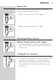 ENGLISH Problem Possible cause Solution The nose trimmer attachment does not work. The cutting element of the attachment is very dirty, for instance because some nasal mucus has dried inside the cutting element. Clean the cutting element by rinsing it under the tap with hot water. Switch on the appliance and rinse the cutting element once more to remove any remaining hairs.