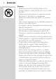 ENGLISH Caution -- Never immerse the cleaning system or the charging stand in water and do not rinse it under the tap. -- Never immerse the shaver in water. Do not use the shaver in the bath or in the shower. -- Never use water hotter than 80°C to rinse the shaver. -- Only use this appliance for its intended purpose as shown in the user manual. -- For hygienic reasons, the appliance should only be used by one person.