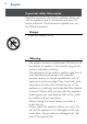 English 7 Caution - Never immerse the adapter in water nor rinse it under the tap. - Never use water hotter than 80°C to rinse the shaver. - Only use this appliance for its intended purpose as shown in the user manual. - For hygienic reasons, the appliance should only be used by one person. - Never use compressed air, scouring pads, abrasive cleaning agents or aggressive liquids such as petrol or acetone to clean the appliance.